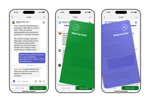- Benutzer können Karten wischen, um schnelle Aktionen auszuführen und Nachrichten zu priorisieren: